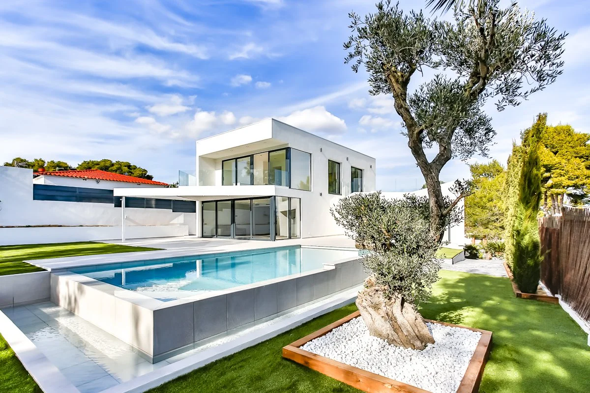 Villa Minimal is our first project in Spain, located on a hillside with exceptional sea views. What was once a small, outdated house has been expanded and completely refurbished, incorporating modern architecture with Mediterranean details, bright finishes, and abundant natural light. The villa has achieved an A energy efficiency rating through the use of SATE external insulation, double-security glazing with argon gas, aluminum frames with thermal break, and solar-control glass.
